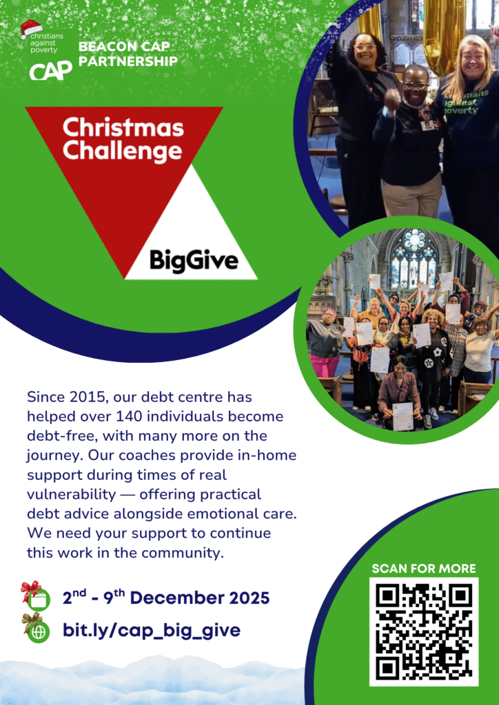 We run a number of services for those in poverty in the local area in partnership with others churches and with Christians Against Poverty (CAP)
